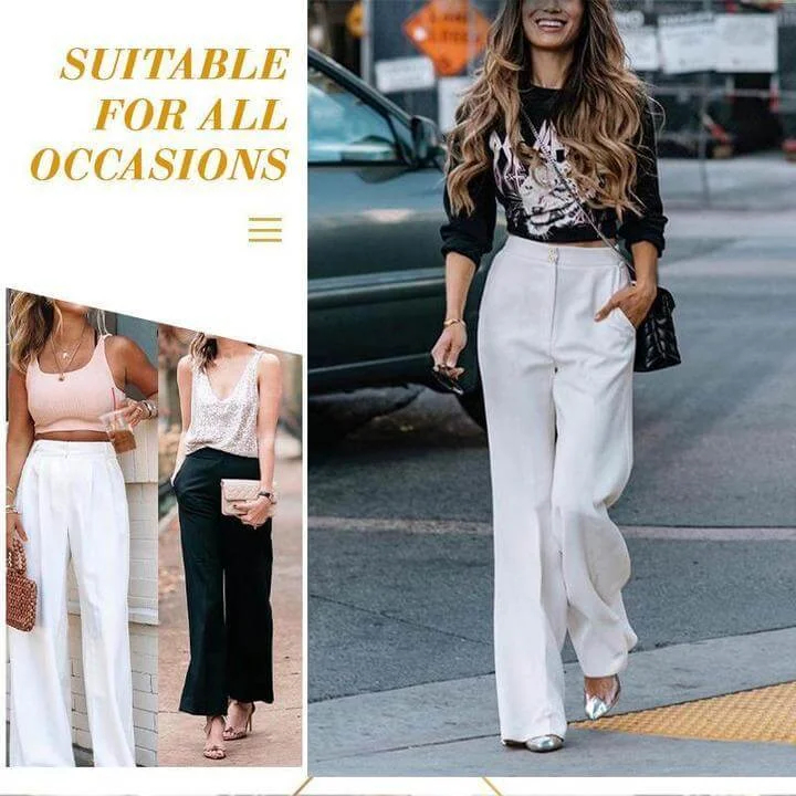 These are tailored-yet-relaxed wide-leg pants with front knife pleats, easy drape, and a long, wide leg. The unique functional waistband of the wide-leg pants provides long-lasting comfort and plenty of stretch to ensure your all-day comfort.