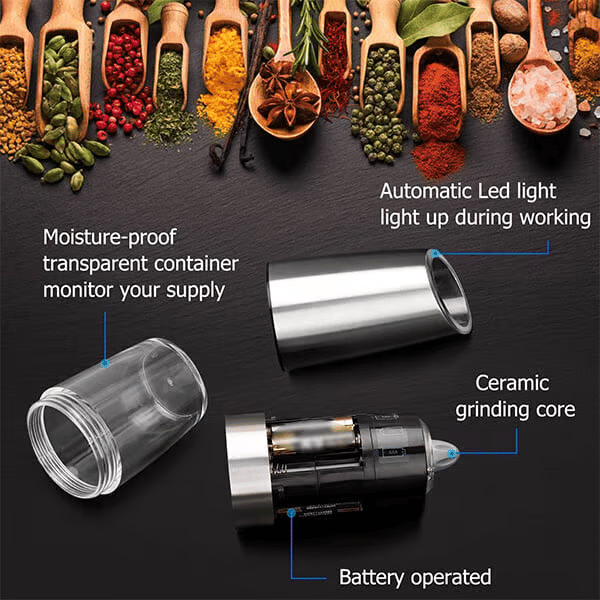 💫 Upgrade your kitchen game with this sleek, practical, and stylish Electric Gravity Induction Salt & Pepper Grinder Set! Perfect for both everyday use and special occasions, it's the ultimate kitchen companion. Get yours today! 🌟
