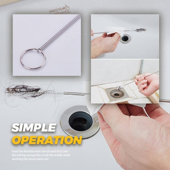 Simple operation: you can put the flexible rod (brush head first) into the pipe, and gently brush the inside, while pushing the brush outward, because its flexible and strong line body is easy to bend, so you can go deeper into any drain to remove dirt.